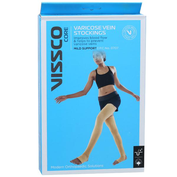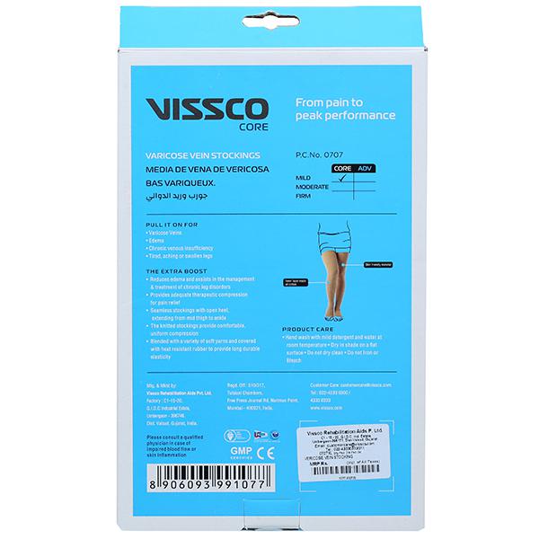 Product Information - Vissco Core Vericose Vein Stockings Above Knee provides controlled compression to the legs, knee and thigh area to squeeze away abnormal backflow of blood into the superficial veins that lie just beneath the surface of the skin from the perforating veins. VRPL stands for WE REDISCOVER PRIVILEGE OF LIVING. Vissco Core Directors with experienced and knowledge developed for last 20 years, look into provide best quality with proper biomechanics to comfort the need of needy people and to become world’s leading corporation and provider of surgical & orthopedic related products. At Vissco Core , The major importance is given to product customization as per the requirement of doctors and need of the users.