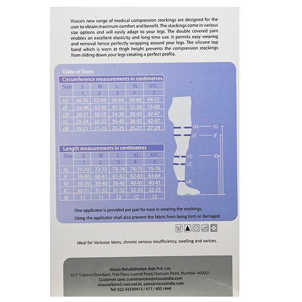 Vissco Platinum Premium Medical Cotton Compression Stockings are useful in treating venous disorders. It compresses the legs thereby increasing the venous blood flow. It can be used for Post operative support, bed ridden patients and ICU patients.