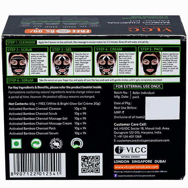 Vlcc Activated Bamboo Charcoal Facial Kit (Free White & Bright Glow Gel Creme 20 g) 60 g