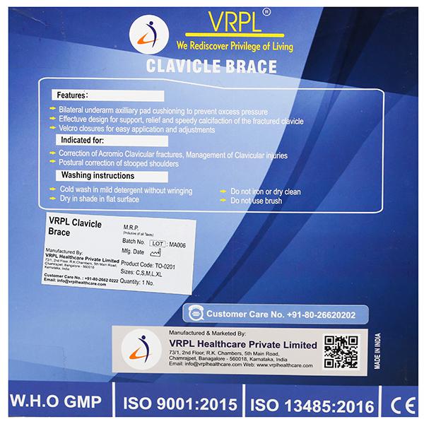 Product Information - VRPL clavicle brace used for shoulder pain. VRPL stands for WE REDISCOVER PRIVILEGE OF LIVING. VRPL Directors with experienced and knowledge developed for last 20 years, look into provide best quality with proper biomechanics to comfort the need of needy people and to become world’s leading corporation and provider of surgical & orthopedic related products. At VRPL, The major importance is given to product customization as per the requirement of doctors and need of the users.