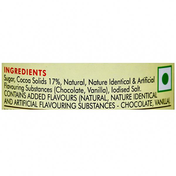 Ingredients - Sugar, Cocoa Solids, Flavoring agents (Chocolate, Vanilla),Iodised Salt