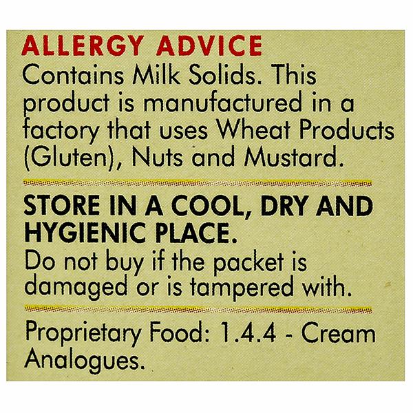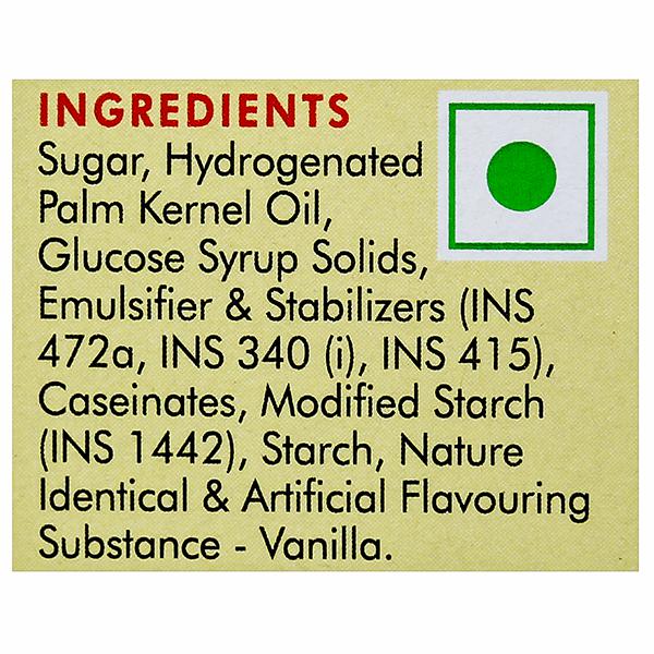 Ingredients- Sugar, Hydrogenated Palm Kernel Oil, Glucose Syrup, Starch Etc