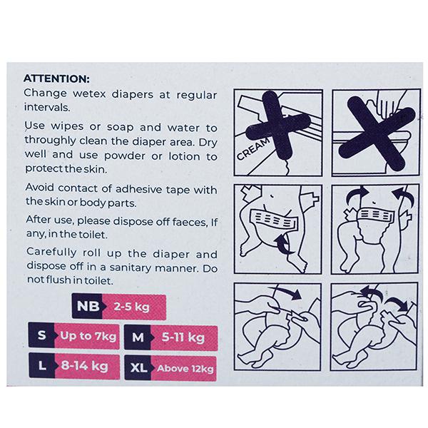 World class quality in baby diapers for new born baby from a very renowned brand " wetex". Wetex diaper has great features like its Anti-bacterial and Absorbent layer. It contains Anti-bacterial Sap and helps the diaper to be gentile of fragile and delicate skin.