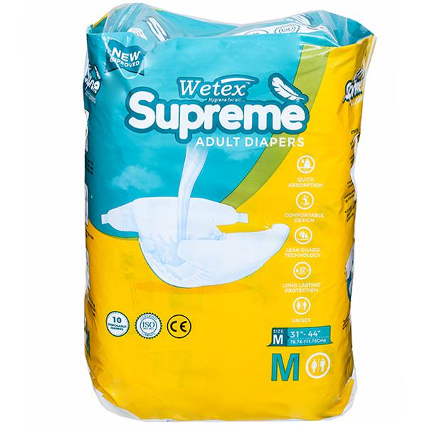 Wetex Supreme Ultra Dry Adult Diaper has super soft inner cotton padding that feels like cloth and re-fastenable that can be adjusted for a fit. Its good absorbent gel keeps you feeling dry and fresh for hours, without having to worry about incontinence. It prevents urine leakage from all sides.