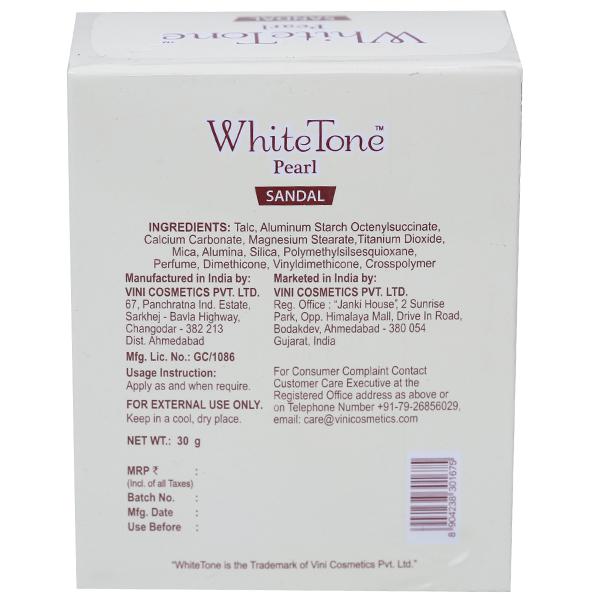 White Tone Sandal Soft & Smooth Pearl Face Powder gives Smooth Feel, Matte Look, Minimizes Minor Blemishes, Looks Natural, With Softshade Formula.