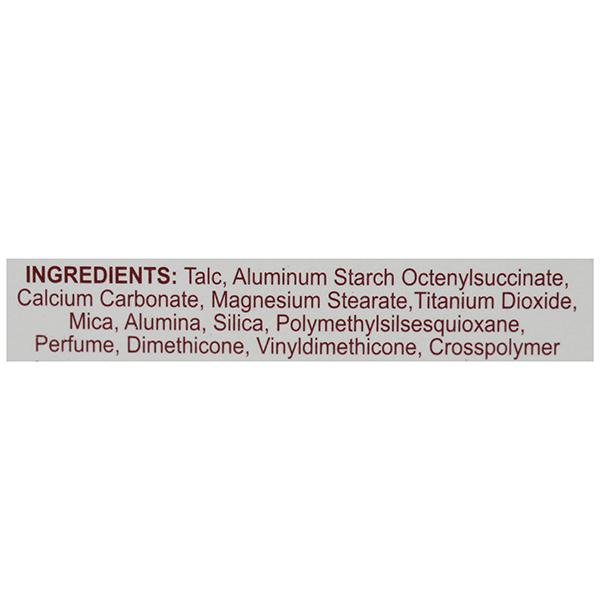 Titanium Di Oxide, Alumina, Talc, Mica, Perfume Magnesium Stearate, Calcium Carbonate, Aluminium Starch Octenylsuccanate, Dimethicone/ vinyl dimethicone Cross Polymer and Silica