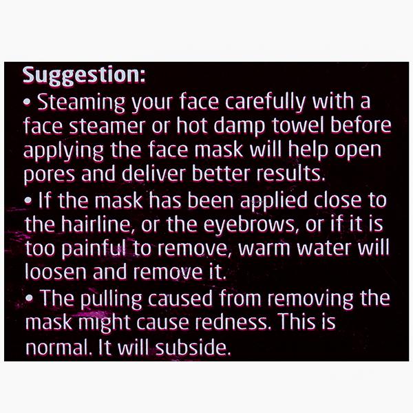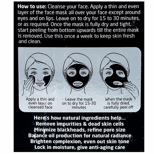 How to Use- Apply a thin and even layer over cleansed face (not around the eyes) using a facemask brush or your fingertips. Leave the mask on to dry for 15-30 minutes. Once the mask is fully dry and tight, start peeling from bottom upwards till the entire mask is removed.