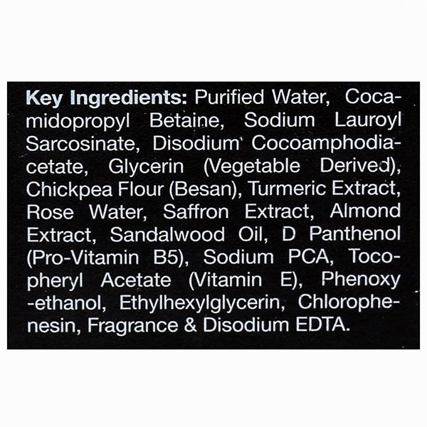 - A skin clarifying face wash that contains almond, turmeric and saffron extracts, sandalwood oil, rose water and chickpea flour. It helps to draw out impurities and give your skin a smooth texture