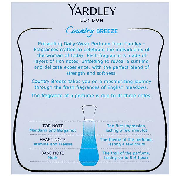 Product Information - A fragrance that never fades, In every whiff of Yardley London womens range, you can hear whispers of the luth English gardens. The House of Yardley specializes in classic, single note scents and trend led floral bouquets to give you a scent of the English luxury.How to Use- Spritz onto pulse points.