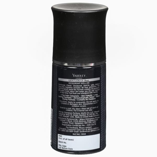 Yardley Gentleman Classic Roll On for Men is an Anti-Perspirant Deodorant Roll On with a distinct, masculine fragrance that comes packed with a fragrance that will elevate your senses with delight and gives 48-hour sweat protection. The natural licorice extracts and amino peptide lighten the skin and promise to reduce wrinkles for smooth and fairer underarms. Freshness and freedom from perspiration is now just a roll-on away! Yardley's anti-perspirant deodorant roll-ons are delicately perfumed with floral fresh fragrances that promise to fill your day with freshness all day long.