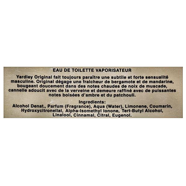 Product Information- From the house of Yardley comes Yardley for Men with contemporary taste and sophistication. Indulge into pure English Luxury with novel masculine aromas that are combined with a warm woody base to give you a long-lasting fragrance. Renew and refresh your grooming routine with our Men?s range. Evoke the senses and invigorate your daily cleanse with our sophisticated selection of Eau de toilettes, Talcum powders, Deodorants and After Shave lotions.