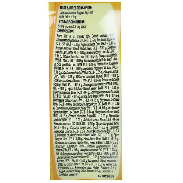 One-n-half to one teaspoon of the product should be taken with milk or honey twice every day.