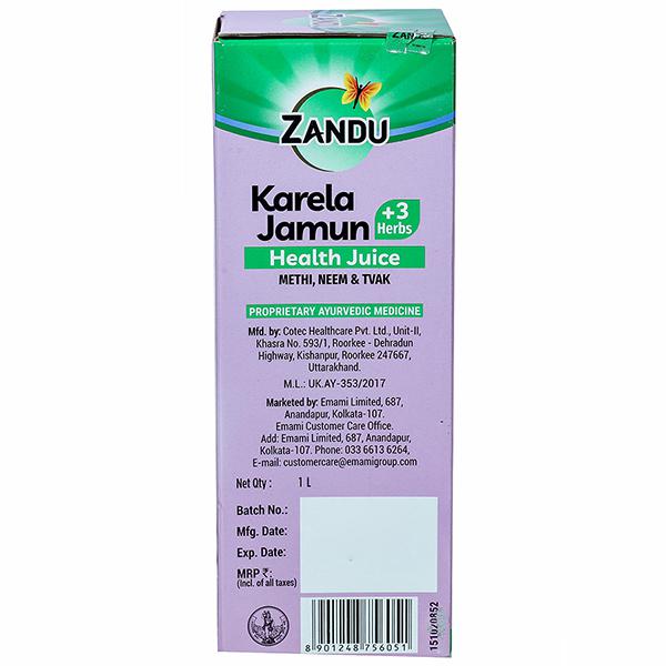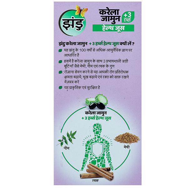 Zandu Karela Jamun +3 Herbs Health Juice is an Ayurvedic juice. It is enriched with ingredients that are known to help manage healthy sugar levels. Zandu Karela Jamun + 3 herbs health juice is good for immunity. It is a natural antioxidant, purifies blood naturally & is an effective appetizer.